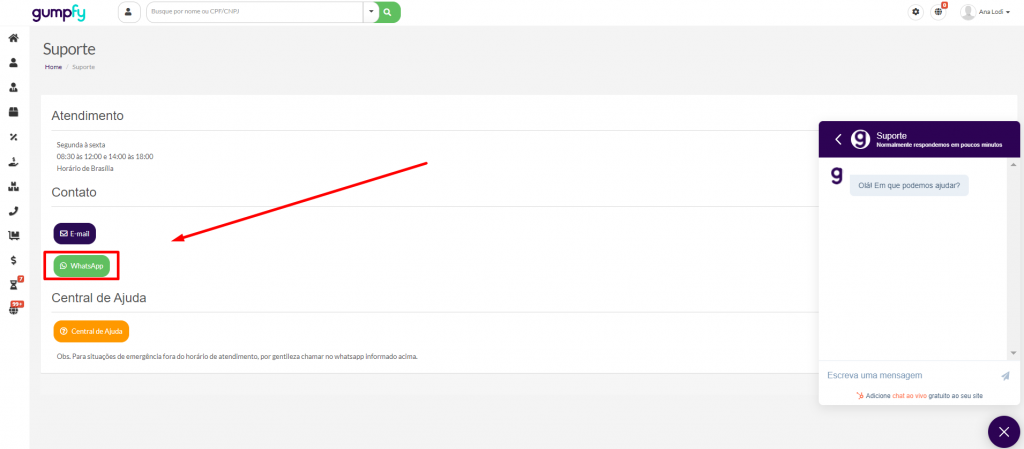 Haverá a opção de um número de whatsapp direto com o suporte para emergências fora do horário de atendimento: