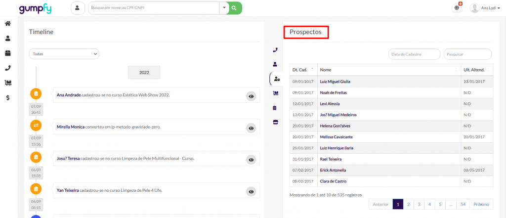 Aqui ficam todos os clientes ativos com compra.